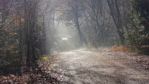 It is early morning with its quiet coolness. I walk out the old logging road. … The logging road along with other trails through the forest is where I practice walking meditation. I do not think of the road as leading anywhere. It is the road to nowhere, the path on which I journey and have been journeying for a lifetime. Although it is the path to nowhere, in reality it is the way to everywhere, because it enables me to enter into communion with the whole community of beings.